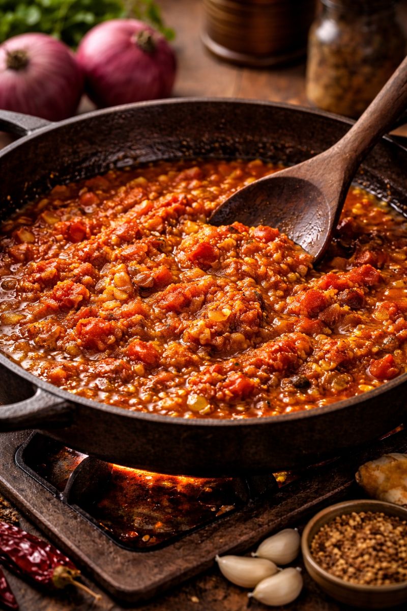 Add cooked dal to the masala and mix well. Simmer for 10–15 minutes, adjusting consistency with water.